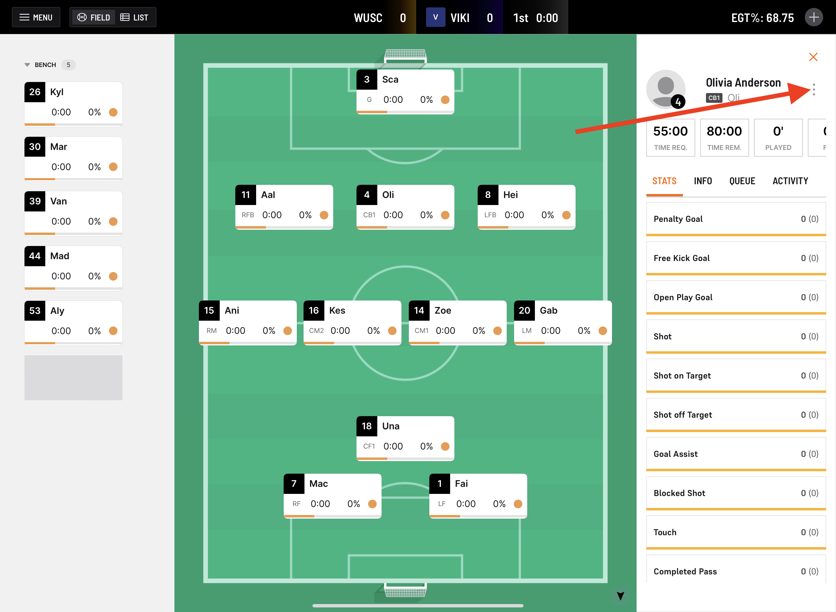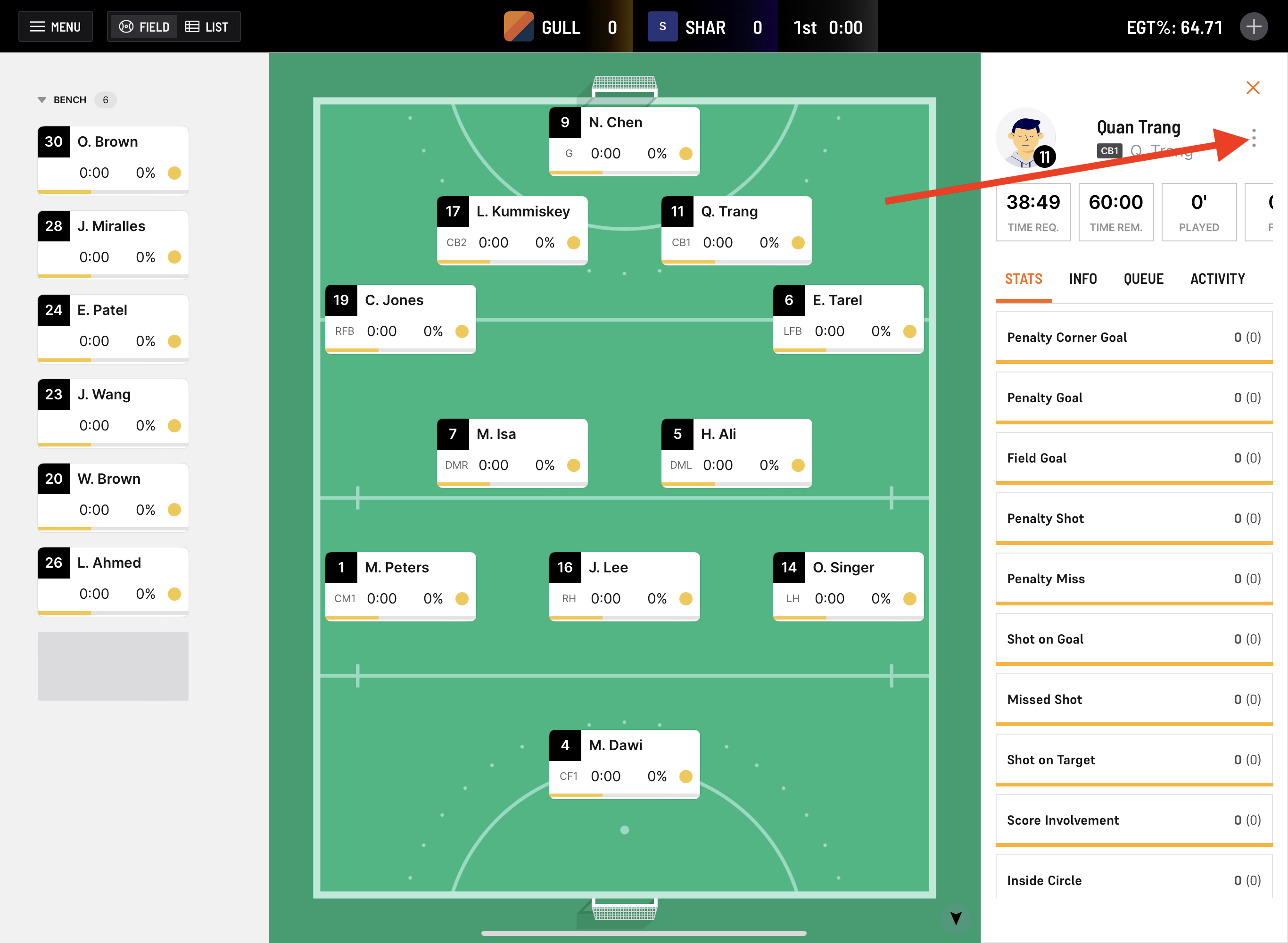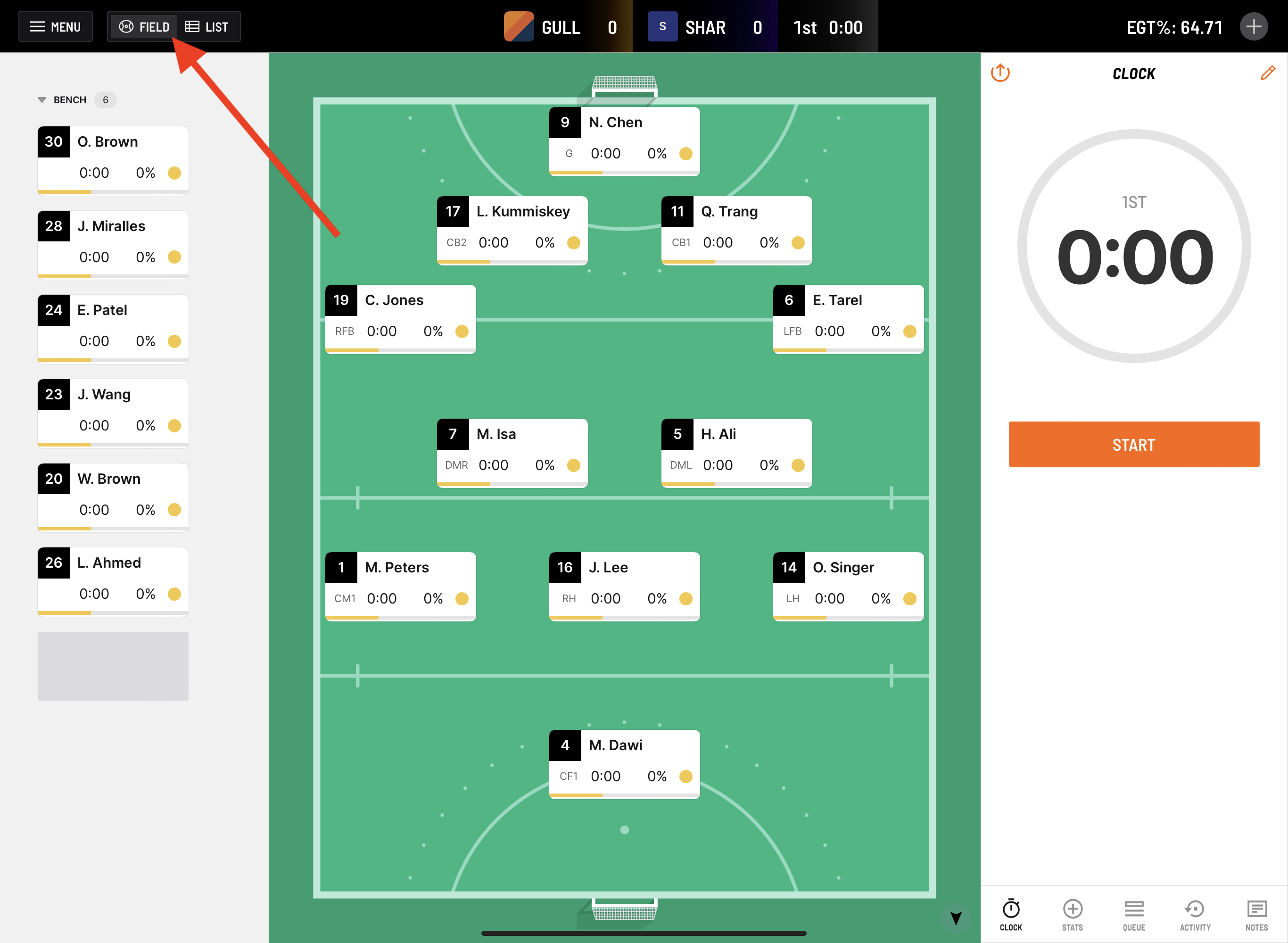 - When in a game, navigate to Field View by selecting the 'Field' button in the top left.