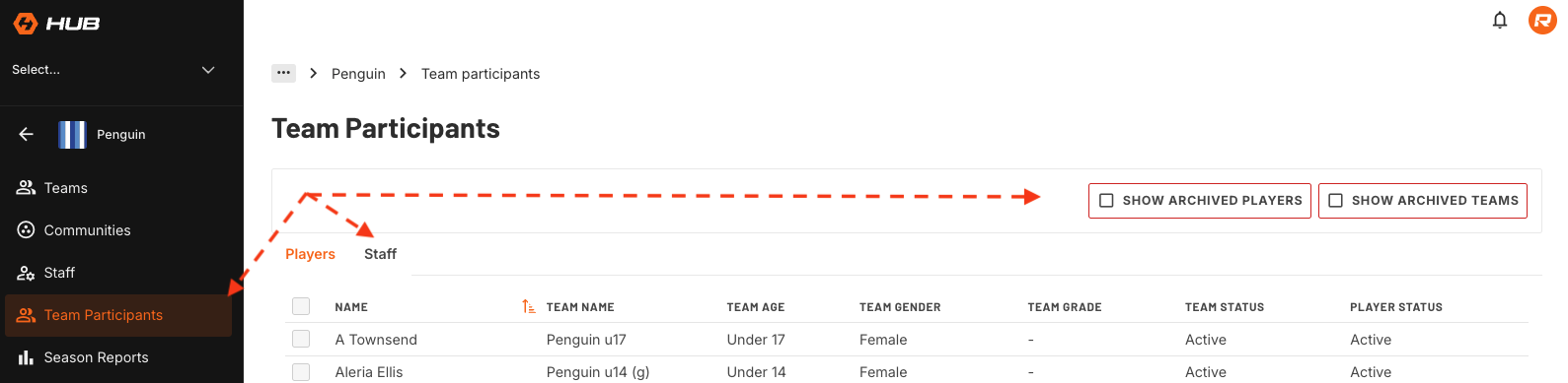 Go to the menu on the left hand side of and select Team participants.